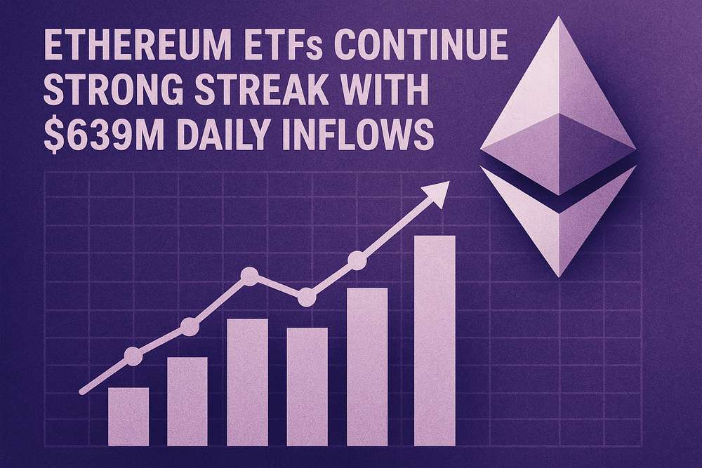 U.S. spot Ethereum exchange-traded funds recorded $639 million in internet inflows, marking the eighth consecutive day of constructive flows as institutional demand for the second-largest cryptocurrency continues to surge. This newest inflow brings the whole inflows over the previous six days to an unprecedented $2.3 billion, demonstrating sustained institutional urge for food for regulated Ethereum publicity.