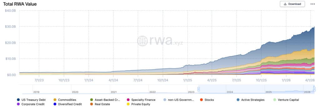 The market these guidelines handle is already substantial. RWA.xyz at the moment exhibits $29.3 billion in distributed real-world property, $13.4 billion in tokenized US Treasuries, and over $1 billion in tokenized public equities and ETFs. The SEC is drawing strains round a market with actual customers and actual cash in it.